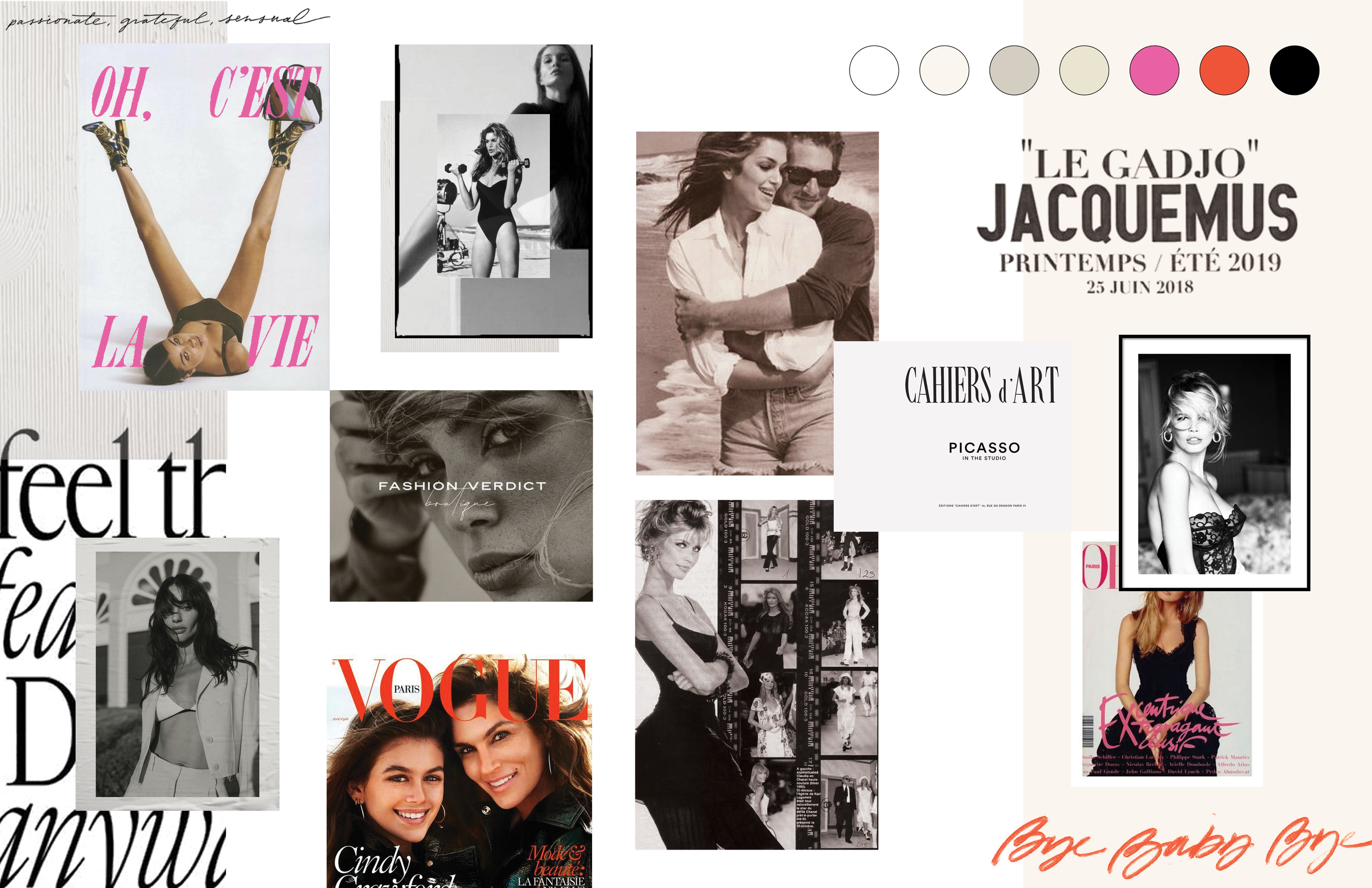 A bold and bossy vibe meets vintage femininity, with mixes of strong typography and eye-catching colors accenting the retro neutrals. Layered framing details and subtle textures create a feel that’s inspired by ‘90s glam but still classically timeless, with a hint of modern edge.