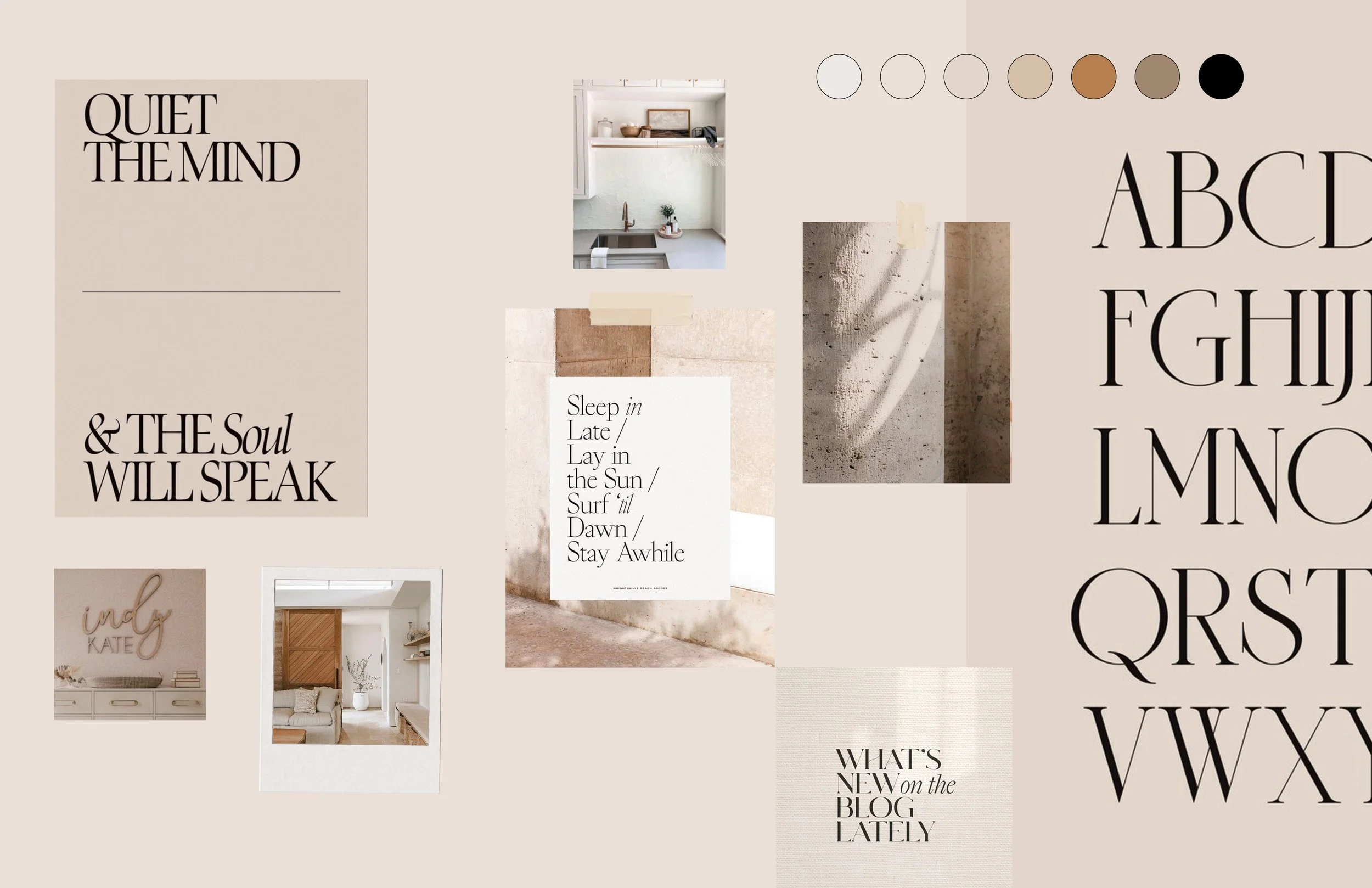 A warm color palette combines neutral and Tuscan influences, with an emphasis on intentional typography that’s both beautiful and functional. Texture brings a lived-in yet refined feel through thoughtful use of shadows, photo frames and tape details.